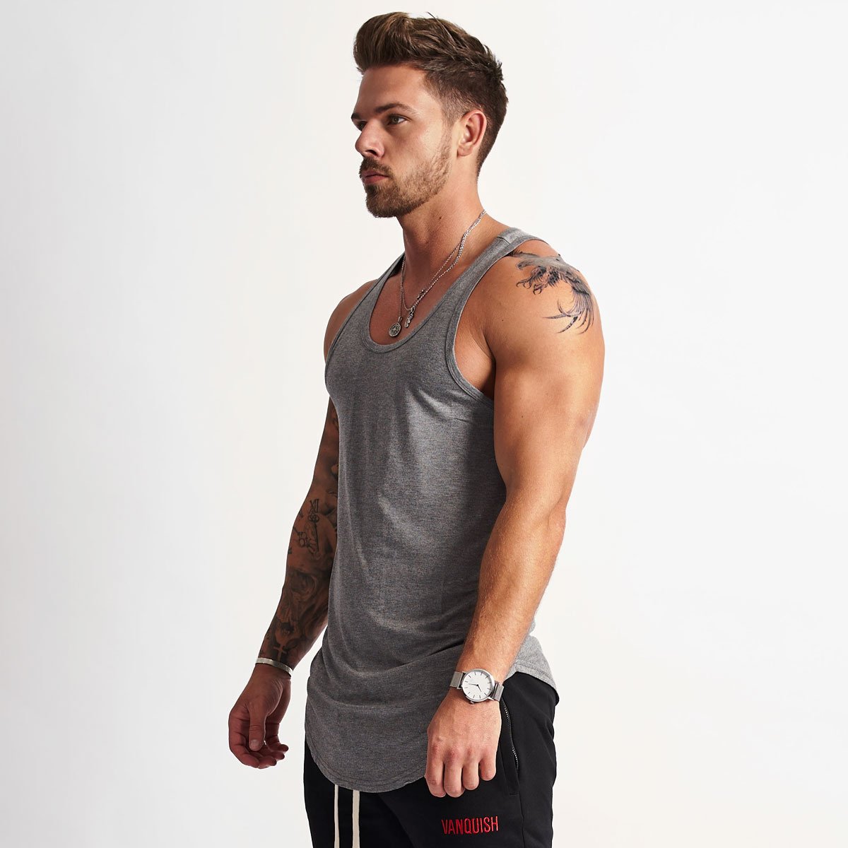 Design: A clean minimalist approach to branding makes this piece wearable in any situation. Finished with a double stitched center back seam and our Vanquish metal hem tag.